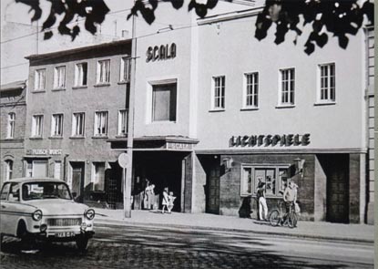 "Scala-Lichtspiele". Dieses Kino befand sich auf der Halber-städter Straße 135 a und wird (siehe oben),zeitweise von der UFA, heute noch als Kino benutzt. 1977 und 1990 |