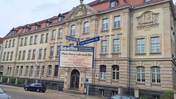 Goethe - Lichtspiele - Goethestraße (in keiner Statistik zu finden!!). Das Gebäude des ehemaligen Kinosin der Goethestraße, Ecke Gerhart-Hauptmann-Straße