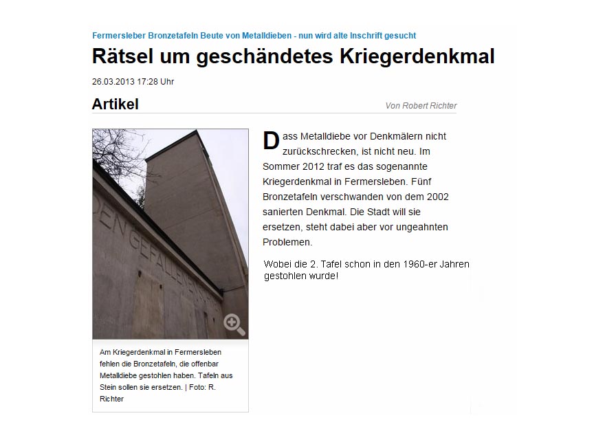 Die fehlende 2. Tafel, ein Foto von 1973 |